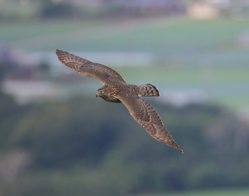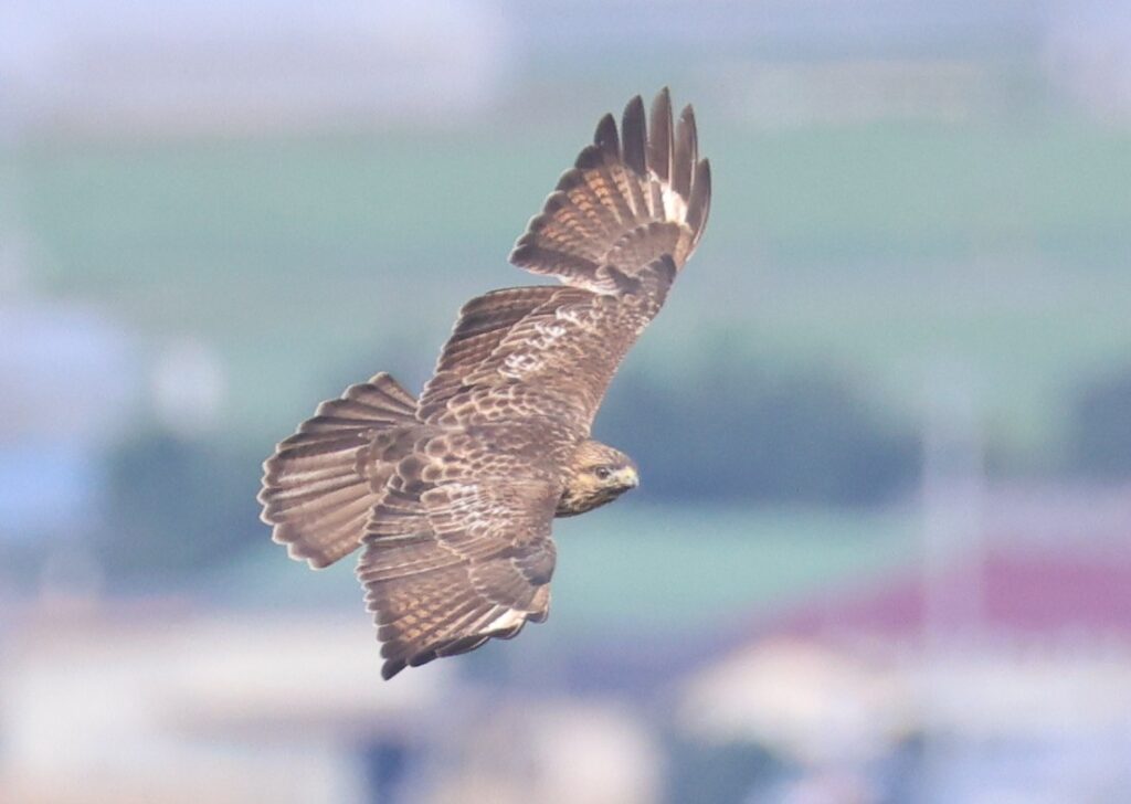 2025.10.30 野鳥観察ブログ 10月23日愛知県伊良湖岬の鷹の渡り ようやく天候が回復したので、久しぶりに鷹の渡りの観察に出かけました。端境期で数は多くはなかったが、多くの種類が通過し、満足の一日。なんか変なものが飛んで来たと思ったらコミミズクでした。 珍しく昼間に渡ってきたコミミズク。 真直ぐに南を目指して飛び去ったチゴハヤブサ雌成鳥。 餌を探して接近して来たオオタカ雌幼鳥。 風切の一部が欠損しているノスリ成鳥。